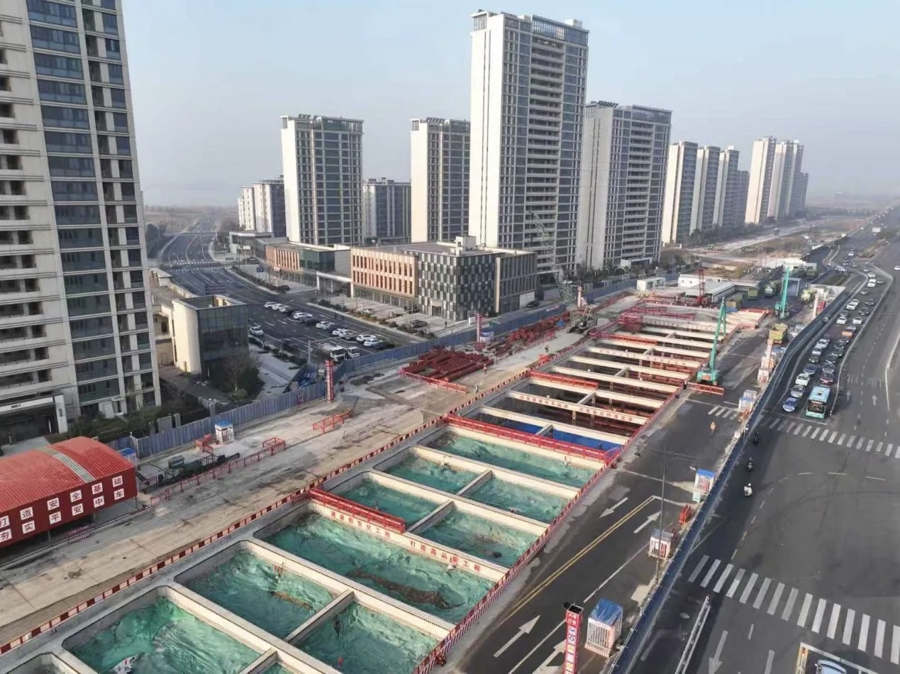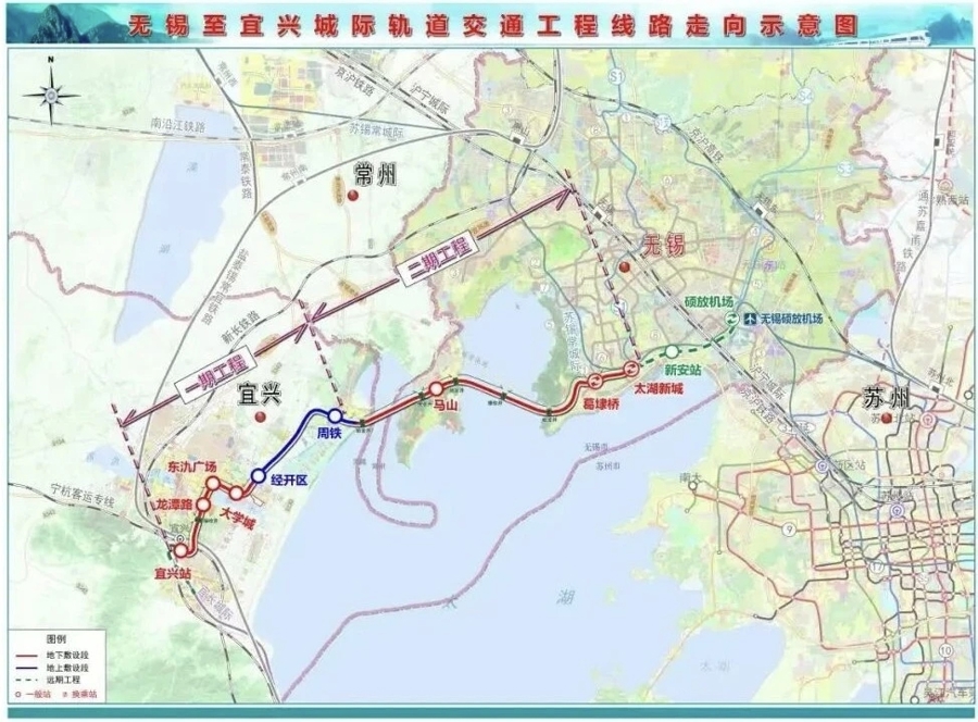 锡宜S2线,全线9座车站,东氿广场站、马山站、大学城站、宜兴站、龙潭路站5座车站正在进行主体结构施工,葛埭桥站、太湖新城站2座车站处于围护结构施工,经开区站、周铁站正在市政前期迁改工程。