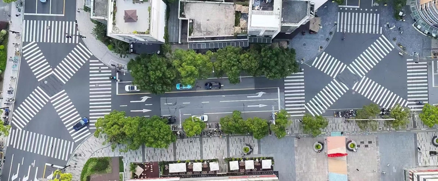 在这样的路口,如果非机动车跟随行人信号灯直行或沿对角线通行,容易造成人车碰擦等情况,也会影响行人的通行效率。