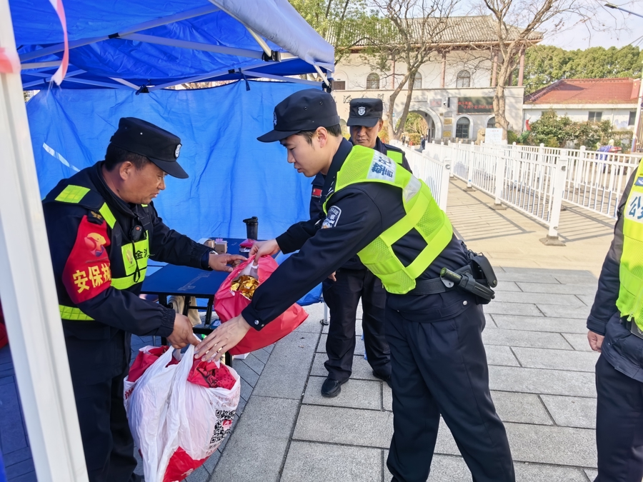 民警将市民群众携带的禁止燃烧物品交由安保人员保管